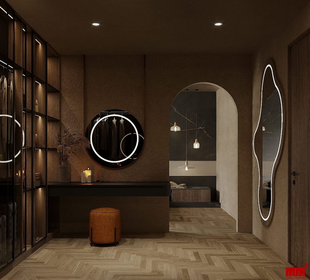 Tầng lửng được thiết kế thông tầng phòng khách, tạo chiều cao thoáng đãng, giúp ngôi nhà cao hơn – sang hơn – mát hơn. Đây cũng là giải pháp thông minh khi bạn muốn xây nhà tại Phú Quốc trên những lô đất diện tích vừa phải nhưng vẫn đảm bảo sự tiện nghi và cảm giác cao cấp.